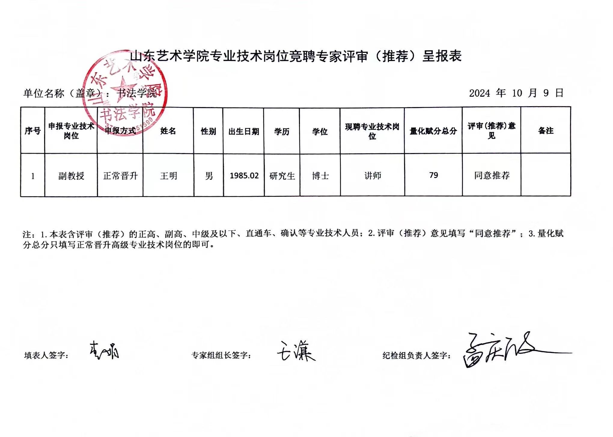 现对2023年度书法学院专技岗竞聘专家评审推荐呈报表以及参评材料进行线上公示。