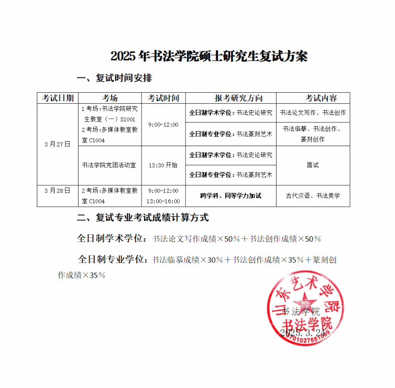 上一条:山东艺术学院书法学院2025年硕士研究生复试录取名额分配方案 下一条:书法学院2025年推荐免试攻读硕士研究生资格名单公示